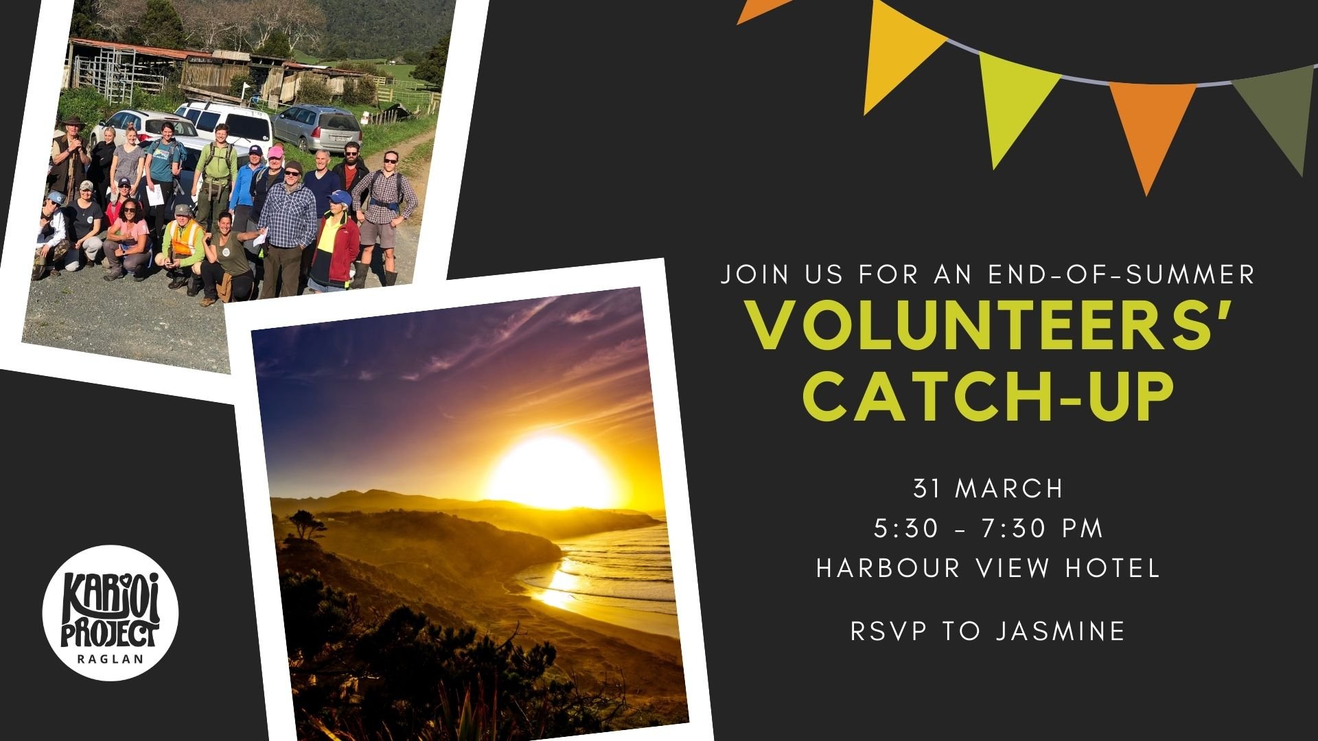 The next volunteer catch-up will be at the Pub, aka the Harbour View Hotel, on Tuesday, 31st of March, from 5:30 to 7:30.